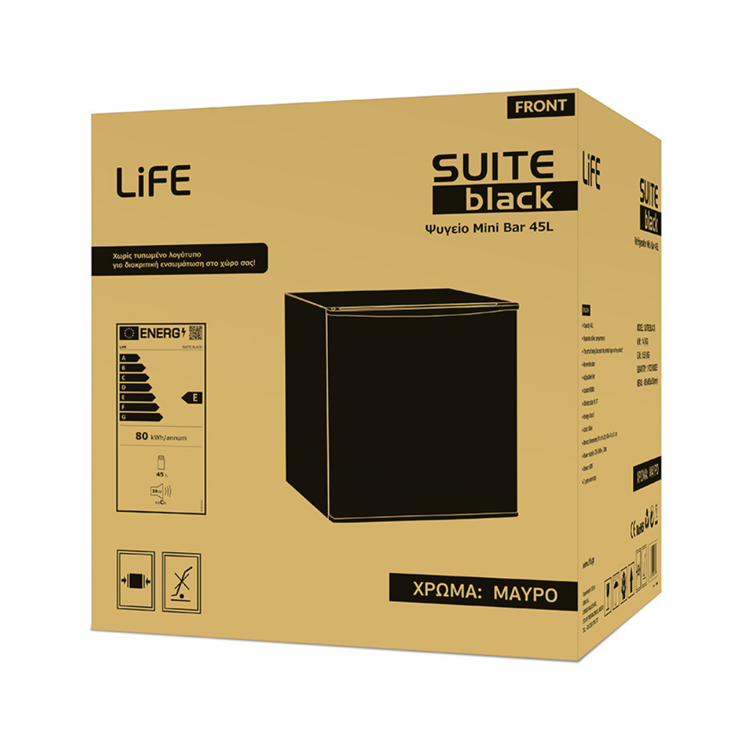 The Mini Bar LIFE Suite refrigerator, with spacious interior, compact exterior dimensions, in black colour, is the ideal choice for small households, rooms to let, hotel rooms and studios.