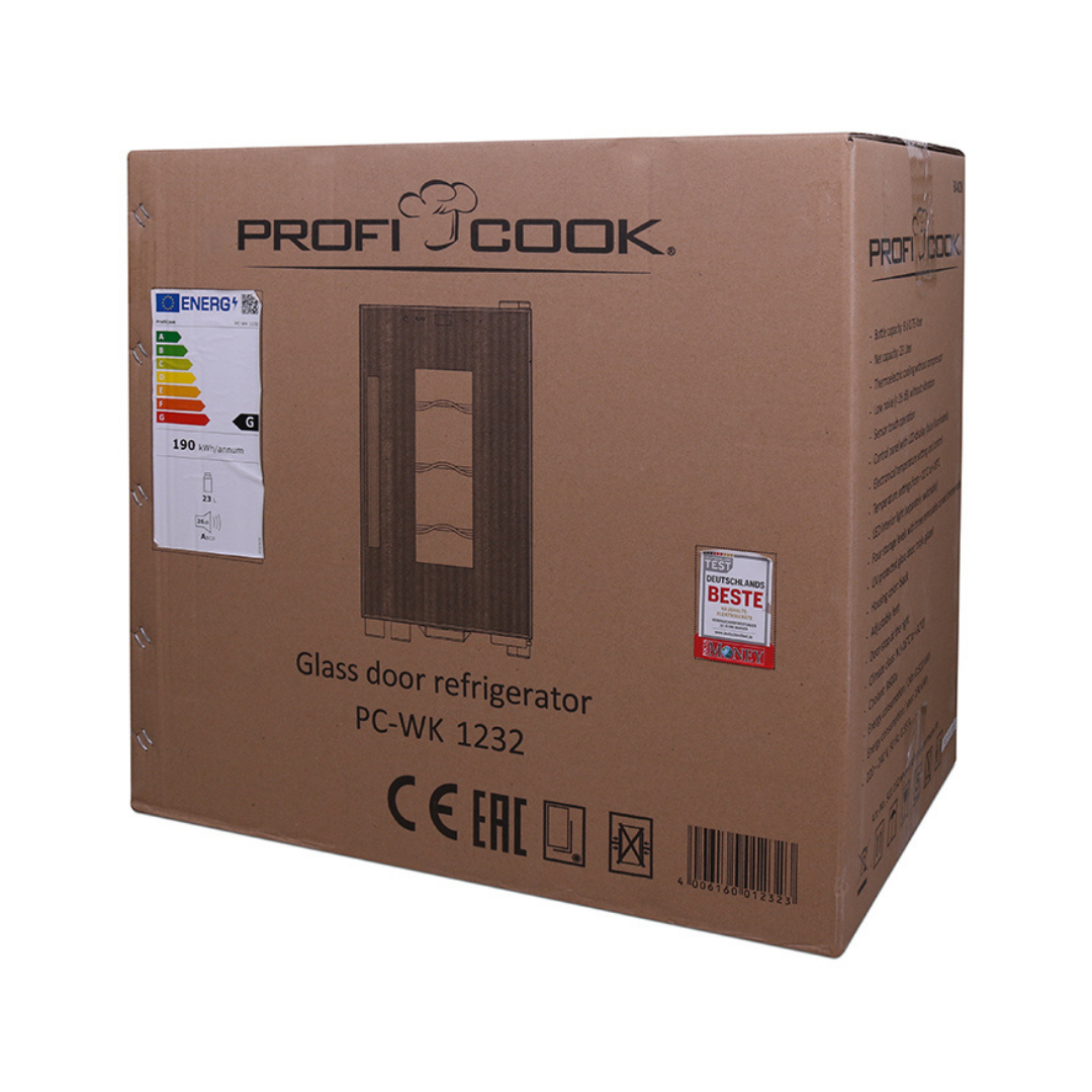 For lovers of good and quality wine, their collection is their property! To be preserved and developed as it should and deserves, it needs an environment with the right constant temperature, proper air circulation, free of odours and vibrations. The PROFI-COOK PC-WK 1232 wine conservator, with a capacity of 8 bottles of 0.75L, modern line and high aesthetics, in black, is the ideal choice. It has a control panel with LCD display, with blue digital readouts, and a low noise level without vibration.