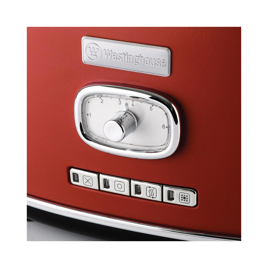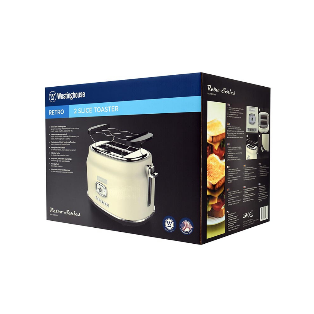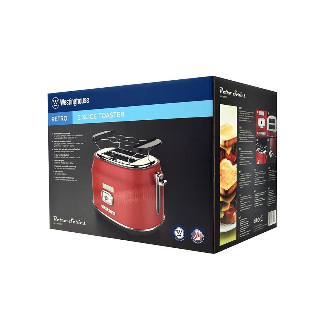 Φρυγανιέρα 2 θέσεων Retro Series από την Westinghouse! Η καταλληλότερη συσκευή για το φρυγάνισμα ψωμιού, είναι ενισχυμένη με 6 επίπεδα θερμοκρασίας και ειδική θέση για ζέσταμα κρουασάν και τσουρεκιού. Η high-end συσκευασία, συμπληρώνει το κομψό, retro design, καθιστώντας την φρυγανιέρα αυτή την ιδανική συσκευή για την διακόσμηση κάθε κουζίνας!