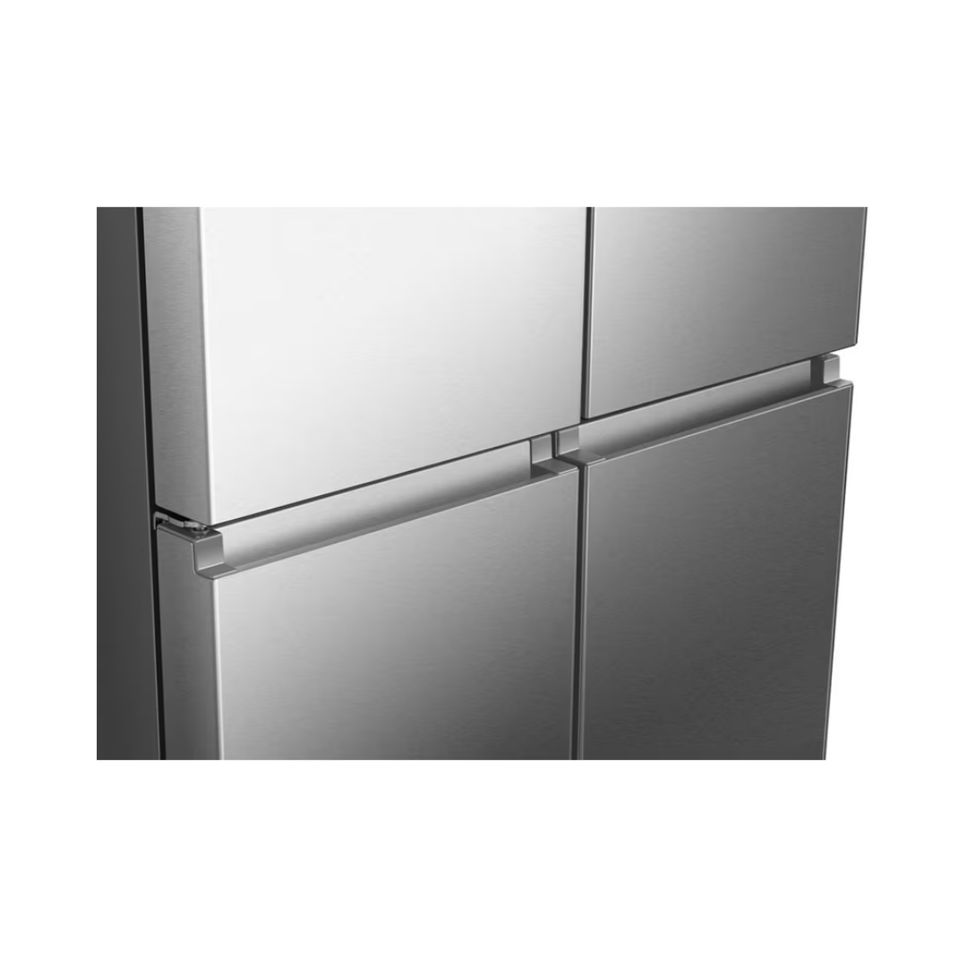 Το ψυγείο ντουλάπα Hisense RQ5P470SMIE ξεχωρίζει με το κομψό inox φινίρισμα και την εντοιχισμένη μεταλλική λαβή, προσφέροντας μια σύγχρονη αισθητική που αναβαθμίζει κάθε κουζίνα. Ο στιβαρός σχεδιασμός συνδυάζει ανθεκτικότητα και λειτουργικότητα, με έμφαση στην άνεση χρήσης.