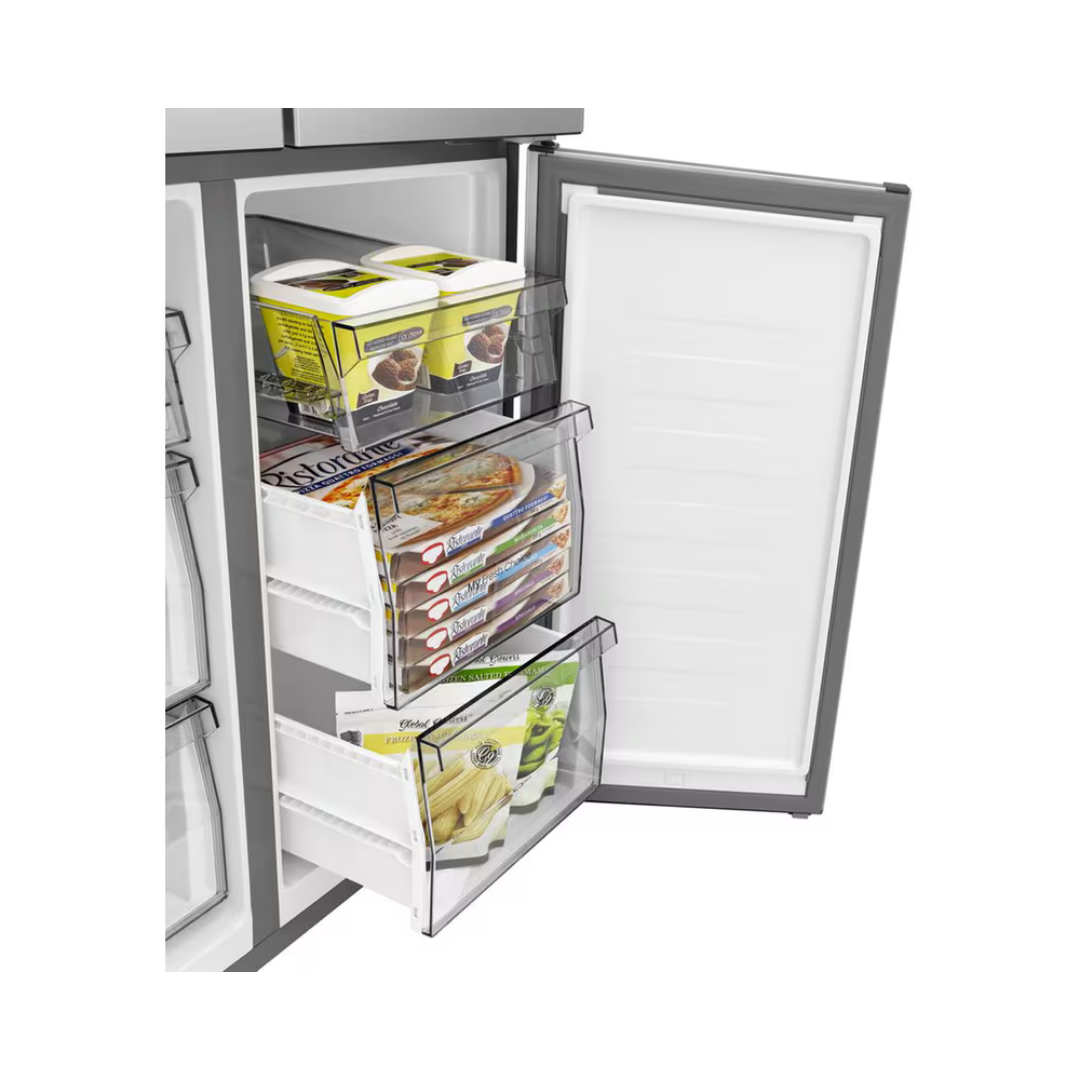 Η μεγάλη χωρητικότητα και το σύστημα ψύξης από κάτω σε συνδυασμό με τις διασταυρούμενες πόρτες προσφέρουν πρακτική οργάνωση και εύκολη πρόσβαση σε όλα τα τρόφιμα. Η τριπλή ζώνη ψύξης εξασφαλίζει ιδανικές συνθήκες διατήρησης για κάθε τύπο προϊόντων, διατηρώντας τη φρεσκάδα τους για περισσότερο χρόνο.
