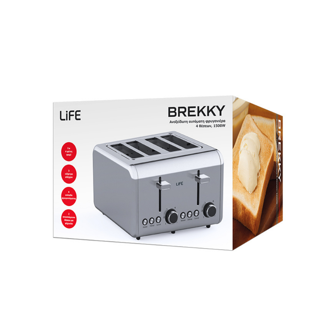 Απολαύστε ένα πλουσιοπάροχο πρωινό, επιλέγοντας την φρυγανιέρα LIFE BREKKY με περίβλημα από ανοξείδωτο ατσάλι.