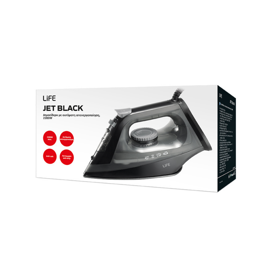 Το ατμοσίδερο LiFE JET BLACK με ισχύ 2200W αποτελεί μια κορυφαία λύση για τέλεια σιδερωμένα ρούχα, εύκολα και γρήγορα! Διαθέτει εξαιρετικά μεγάλη αντικολλητική πλάκα με κεραμική επίστρωση, ρυθμιζόμενο θερμοστάτη, παραγωγή ατμού 15g±5g/min και επιλογή στεγνού σιδερώματος ή σιδερώματος με ατμό.