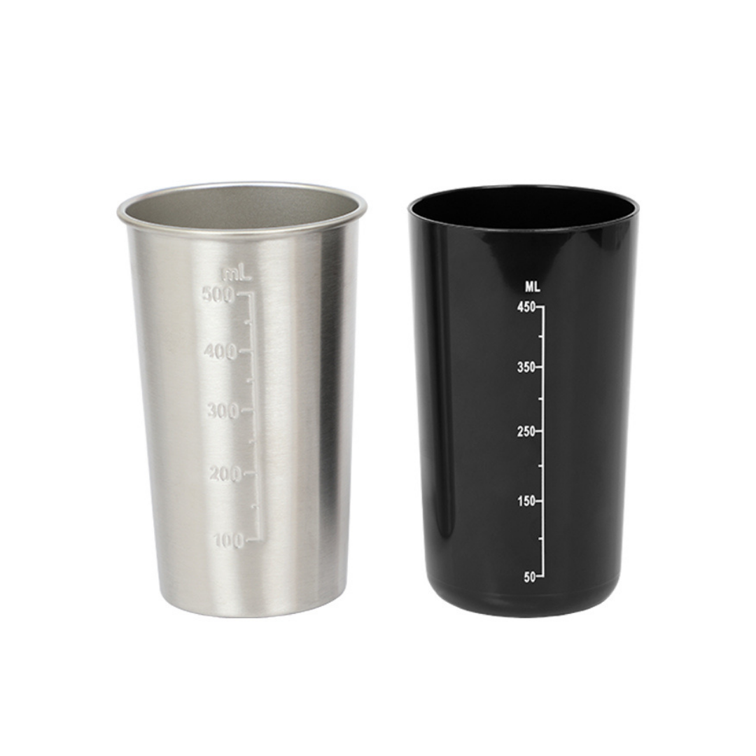 – 2 ποτήρια: Ανοξείδωτο ποτήρι 500ml & Πλαστικό ποτήρι σε μαύρο χρώμα 450ml