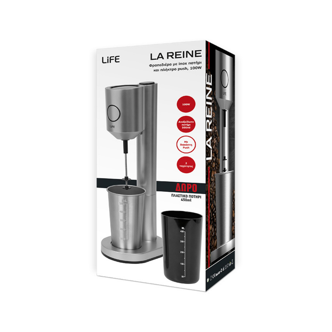 Η LiFE LA REINE είναι η ιδανική επιτραπέζια φραπεδιέρα για να παρασκευάσετε, εύκολα και γρήγορα, απολαυστικό καφέ, αφρόγαλα αλλά και να δημιουργήσετε κοκτέιλ, milkshakes, dressings κ.ά.