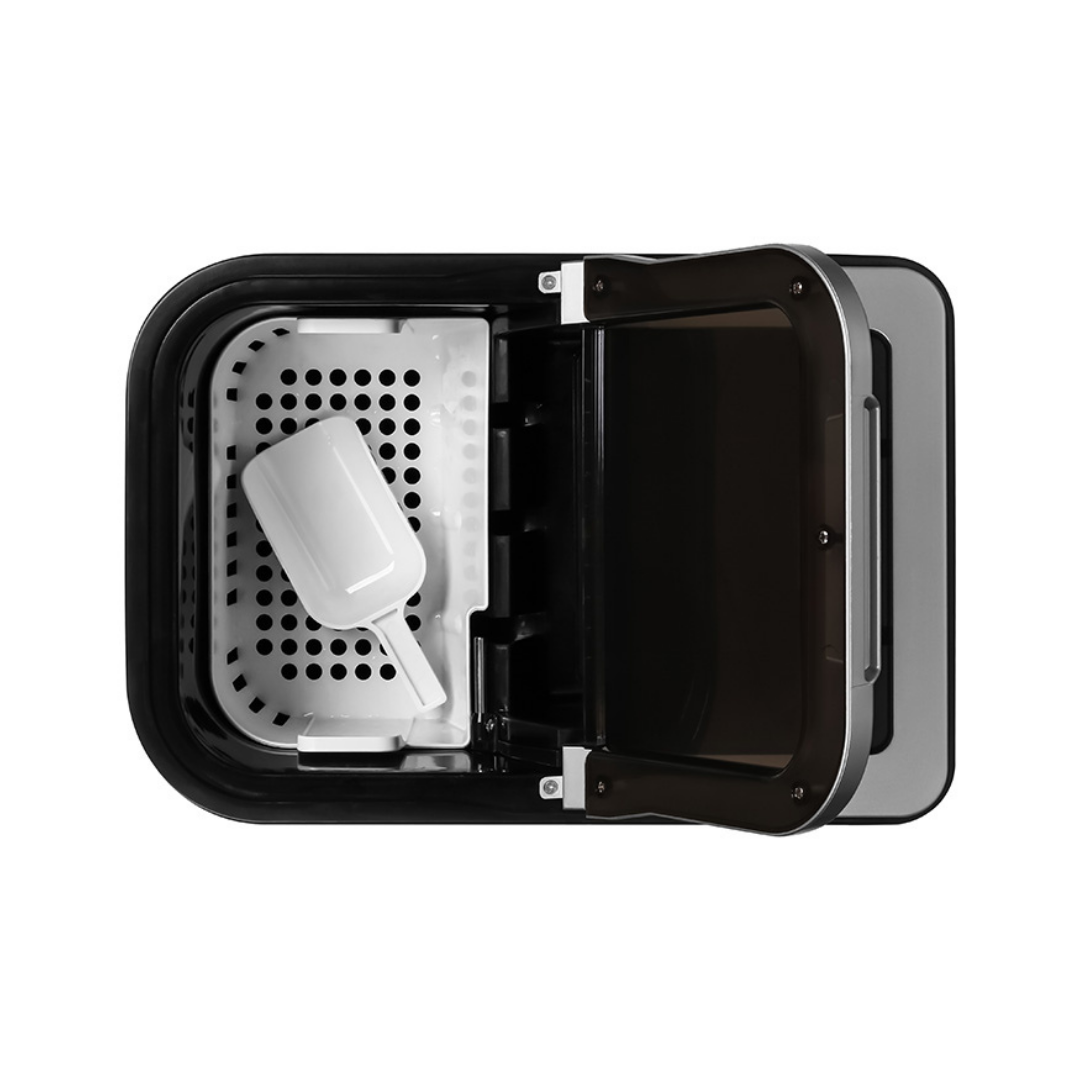 Επίσης, η παγομηχανή διαθέτει ένα διαφανές παράθυρο στο καπάκι και ένδειξη LED, που σας επιτρέπουν να παρακολουθείτε την κατάσταση παραγωγής πάγου ανά πάσα στιγμή. Η παγομηχανή παράγει έναν ήχο, όταν το δοχείο πάγου είναι γεμάτο ή όταν το νερό λιγοστεύει και συνοδεύεται από το άναμμα της αντίστοιχης λυχνίας LED.