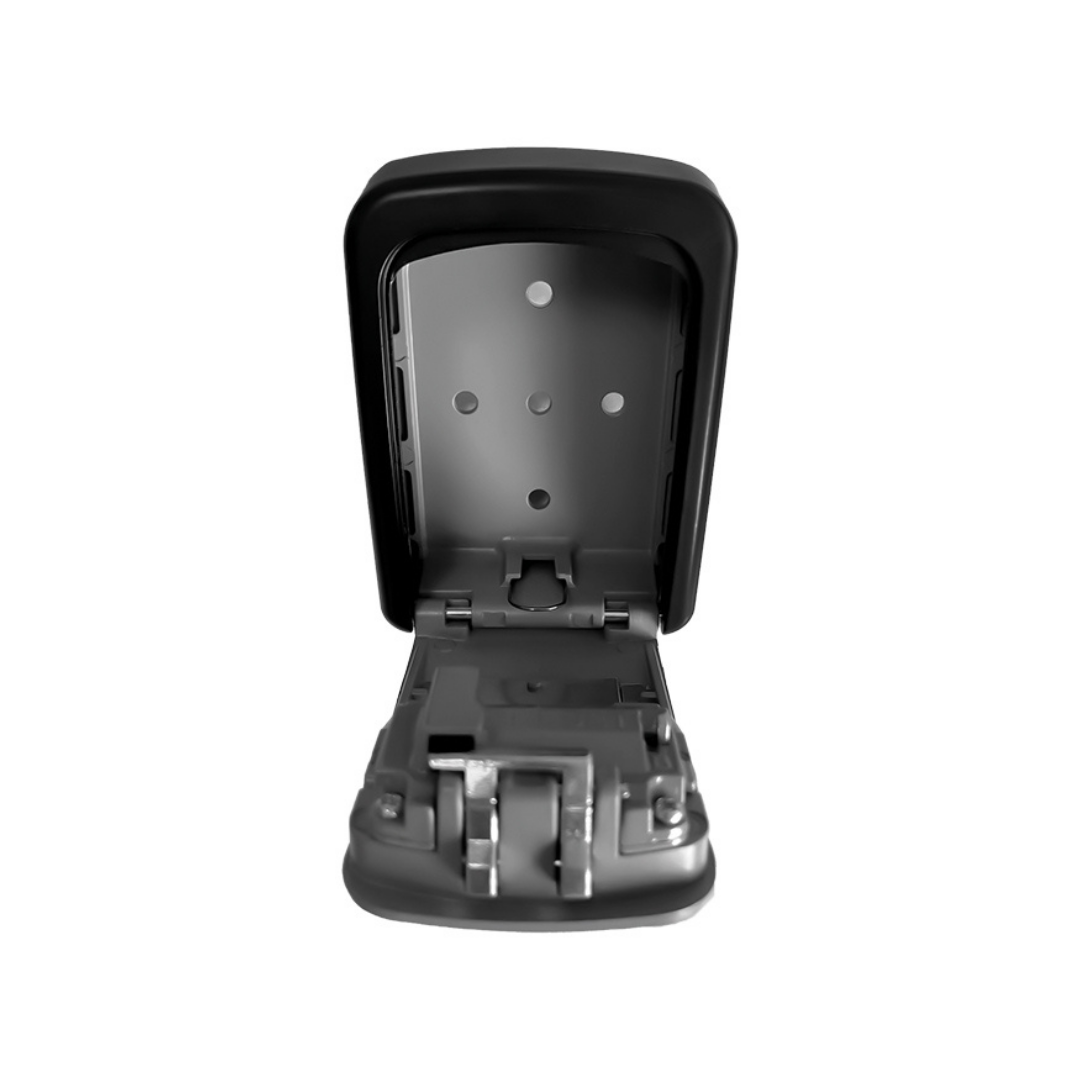 Η κλειδοθήκη είναι κατασκευασμένη από αλουμίνιο, προσφέροντας εξαιρετική αντοχή στην υγρασία, ενώ οι οπές στο πίσω μέρος της επιτρέπουν την εύκολη στερέωση σε τοίχο για επιπλέον ασφάλεια. Το συρόμενο πορτάκι προστατεύει τα κουμπιά του συνδυασμού από τις καιρικές συνθήκες και τη φθορά.
