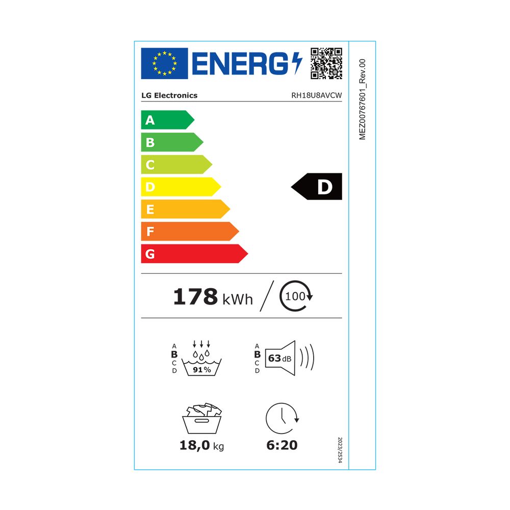 Στεγνωτήριο Ρούχων LG RH18U8AVCW 18 kg D