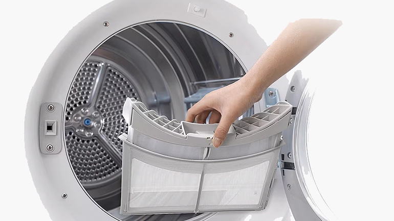 To διπλό φίλτρο βοηθά στην απόδοση του στεγνώματος φιλτράροντας το χνούδι.