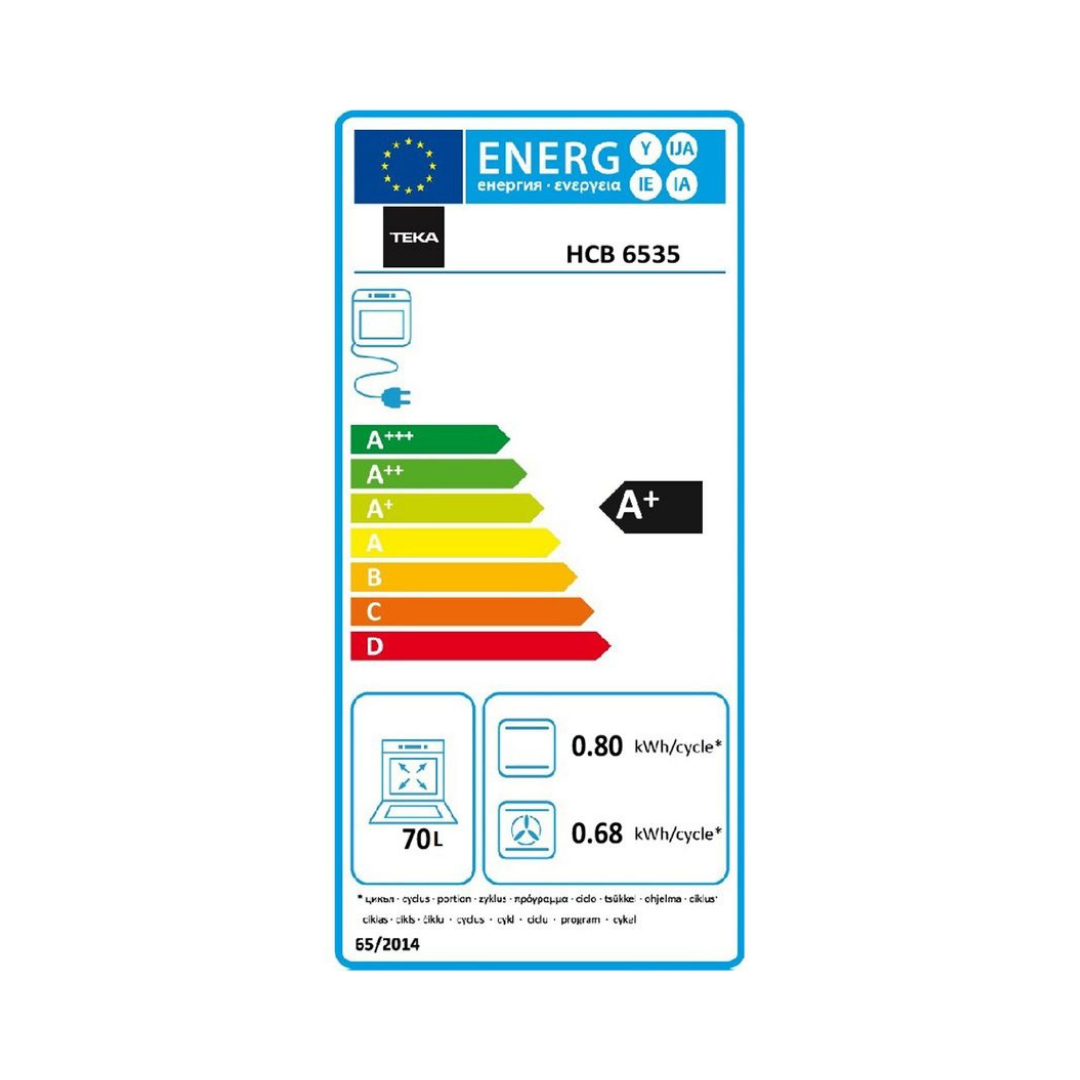 Εντοιχιζόμενος φούρνος HCB 6535 της Teka πολλαπλών λειτουργιών χωρητικότητας 70 λίτρων με SurroundTemp, σύστημα καθαρισμού Hydroclean PRO, ειδικές λειτουργίες: ECO και απόψυξη και ασφάλεια παιδιών.
